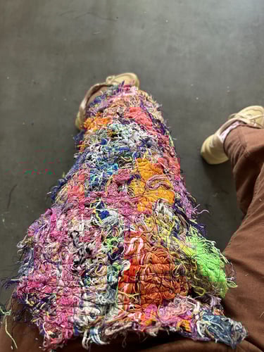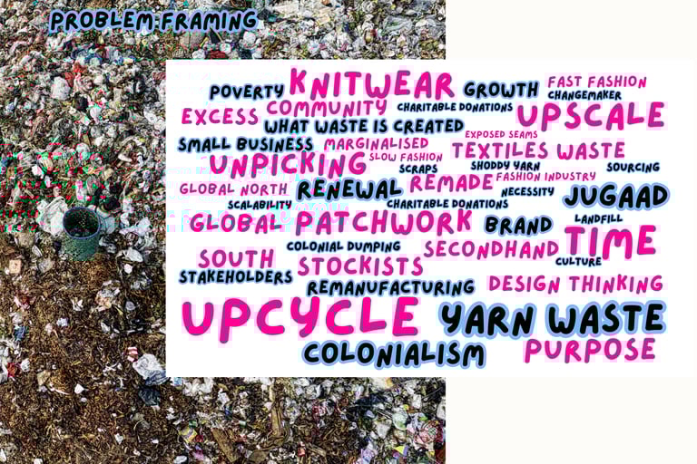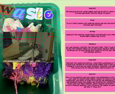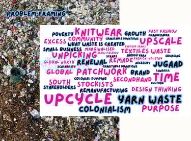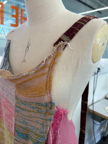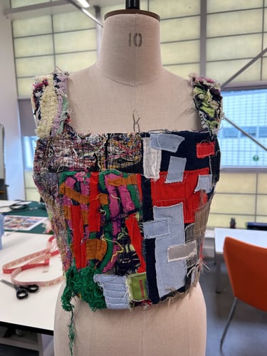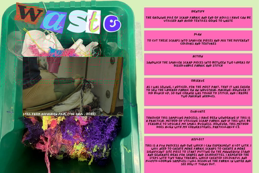 The project seeks to reduce textile waste and scrap material while considering methods for scaling the small fashion business. Since launching my brand, I've received queries about stocking my designs from buyers from well-known brands both domestically and globally. I've struggled to duplicate reused things in the quantities buyers require, limiting my growth as a small business. Another aim is to develop an alternative option that opposes textile waste disposal exports to the Global South to dismantle colonialism. The surplus waste disposal of the Global North has disproportionately overburdened and harmed countries in the Global South (Dead White Man's Clothes, 2016).