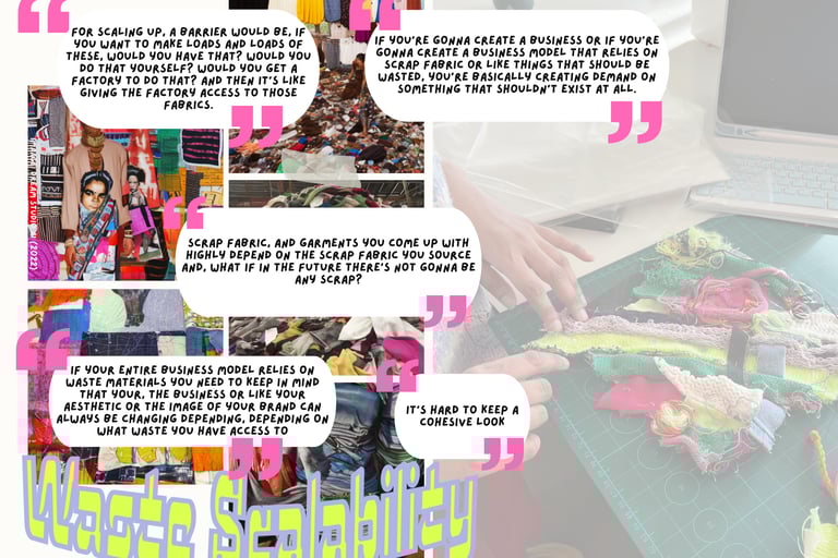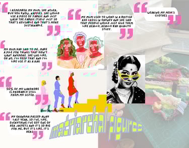 The results chapters reveal workshop participants' insights into matriarchal influences on sustainable living, differing reuse practices across cultures, and the cultural backdrop shaping recycling and repurposing practices. The research also unveils scalability challenges sustainably, emphasising collaboration among stakeholders and technological advancements for a more sustainable industry amid complex supply chains and material sourcing. The fashion and textile waste arena poses challenges and opportunities, encouraging transformative change.