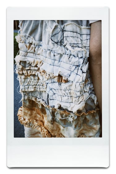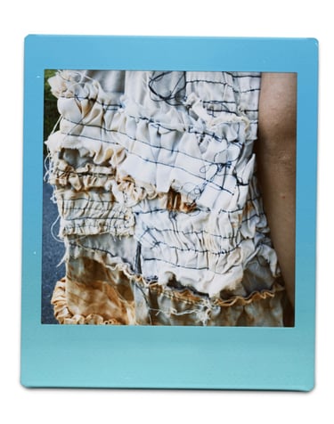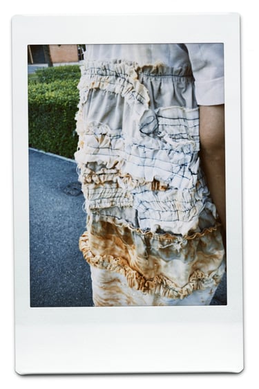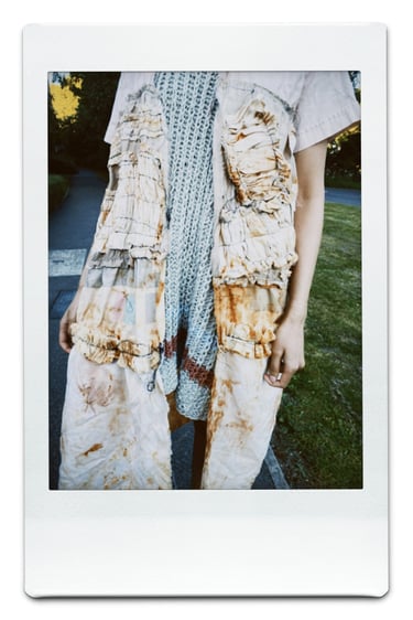 Original Spice Girl is a playful yet poignant reclamation of identity, an ode to the marks of home that never quite washed out. The turmeric stains, the scent of spice woven into fabric, the teasing that became second nature—this collection turns those childhood insecurities into something beautiful. Crafted using natural dyes like turmeric and rust, with the latter sourced from my dad's forgotten tools in the shed, a quiet nod to her family’s background in metal forging, each piece carries the weight of history, resilience, and reinvention. A nod to the pop group, yes, but more importantly, a reminder that we are, and always have been, the original spice girls.